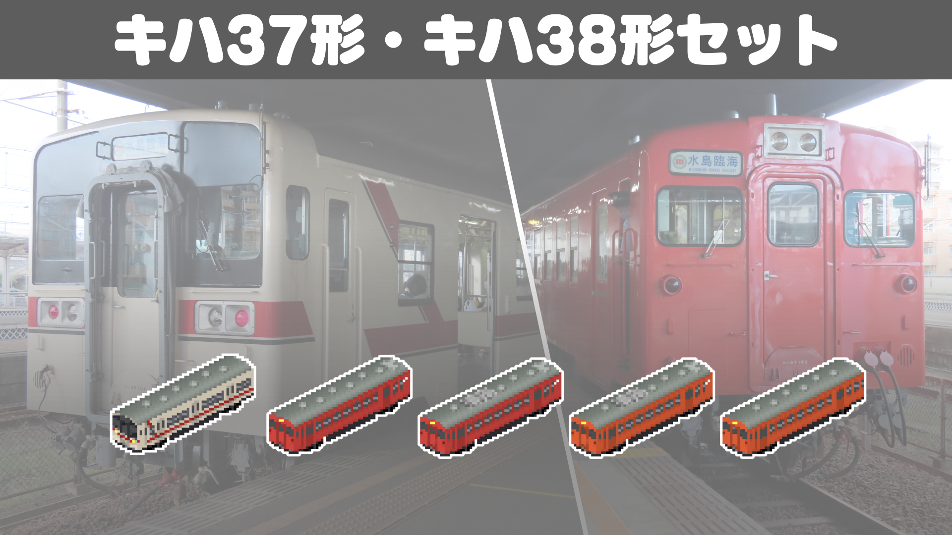 1980年代国鉄の新世代ディーゼルカーとして計画されていたキハ37形・キハ38形のセットです。 今は水島臨海鉄道で活躍しています。 少数派となってしまった子たちですが、Simutransでは是非活躍させてあげてください。 以下のバリエーションがあります。 [キハ37] ・新首都圏色(赤11号) 冷房あり・なし ・首都圏色 冷房…