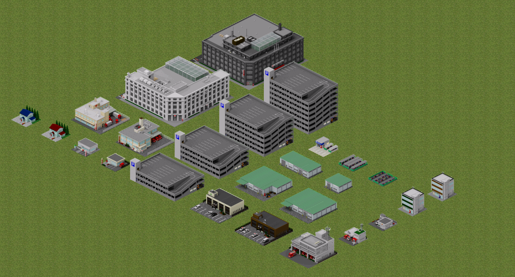 ボクセルで製作した建築物のセットです。 特殊建築物 ・立体駐車場 ・駐輪場 ・JA支店 ・倉庫 ・警察署 ・交番 ・消防署 ・消防分署 ・郵便局 駅舎 ・倉庫 市内建築物 ・倉庫 ・オフィスビル 立体駐車場は朱雀重工氏との共同制作品です。 2023/3/14 ver1公開 2023/3/18 ver2更新 朱雀重工氏による加筆版の立体駐車…