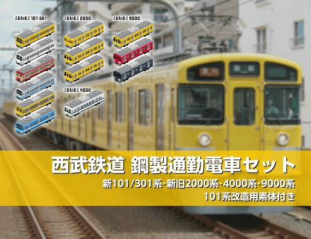 西武鉄道の新101系・301系・新旧2000系・4000系・9000系を、現行仕様を中心に制作しました。 また、西武鉄道を離れ各地の地方鉄道で第二の人生を送っている元101系の仲間を簡単に作ることができるよう、改造しやすい形の素体を同梱しました。 ぜひ、皆さんの手でたくさんのバリエーションを増やしてください! ※101系にアル…