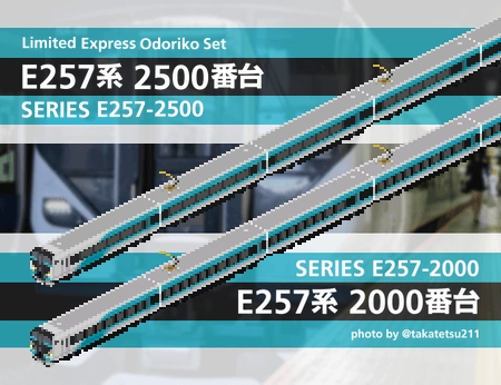 特急踊り子号に使用されるE257系2000・2500番台のセットです。 2000番台と2500番台を併結させ、14両編成を組成することが可能です。 単品で配布しているE257系2000番台をインストール済の方は、ファイルを置き換えてください。単品配布版のままではE257系2500番台との併結ができません。