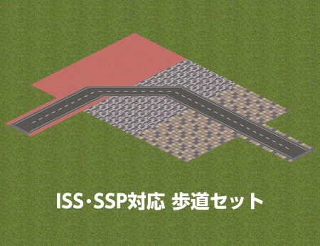 道路の上に敷いて使用する、併用軌道属性の歩道パーツです。 128na様の「それなりにそれっぽいインフラアドオン集」およびしらかみ様の「システマティック駅前広場」に付属する遊歩道に対応しています。