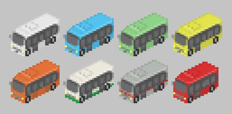 現在生産中の国産唯一の小型バスである日野・ポンチョが数種類入っています。 ・単色(白・青[水色]・赤・黄・緑[薄緑]) ・伊予鉄道 ・奈良交通 ・越後交通 が収録されています。なお、今後収録車両は追加される場合があります。 2022/7/25 公開(白・青・赤・黄・緑・伊予鉄・奈良交通・越後交通)