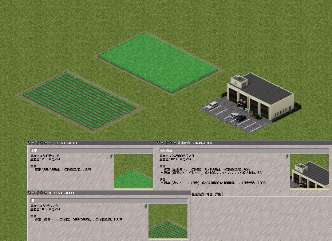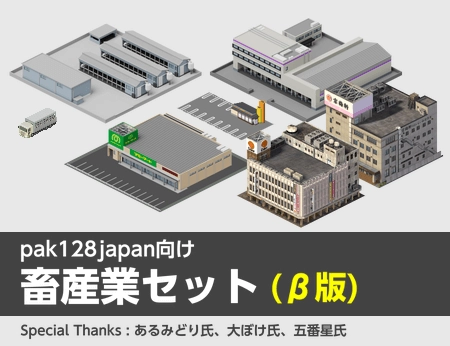 pak128.japanの産業をより良くしていくセットの第一弾です。 農協倉庫のグラフィックを変えたものとW式田畑を産業に改造したものが入っています。