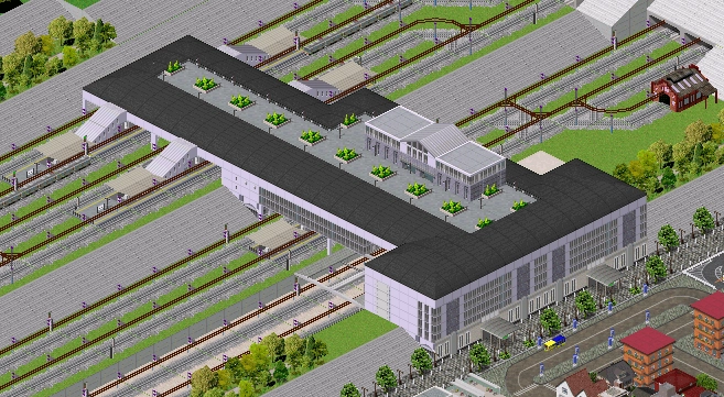 橋上駅舎とペデストリアンデッキのセットです。 運河メニューに追加されます。駅舎(停車場)はペデストリアンデッキ(運河)の上に建設可能です。 箱積み可能です。