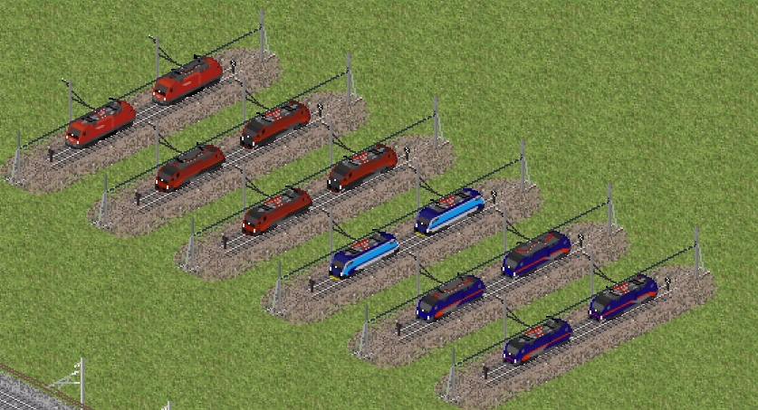 スイス連邦鉄道(SBB-CFF-FSS)の電気機関車のセットです。 汎用D型機Re420(Re4/4Ⅱ)、山岳向けF型機Re620(Re6/6)、 200km/h・6100kwの高速汎用D型機Re460(ロゴ有・無) の3車種6両が入っています。 2021.10.3 ver.1 公開 2021.11.6 ver.2 Re460のサイズ・色調、全車のjatabを修正 2022.6.19 ver.3 更新 Re420・Re62…