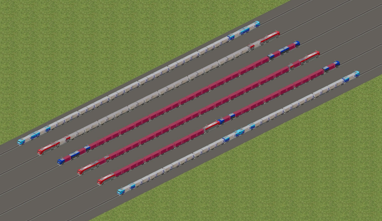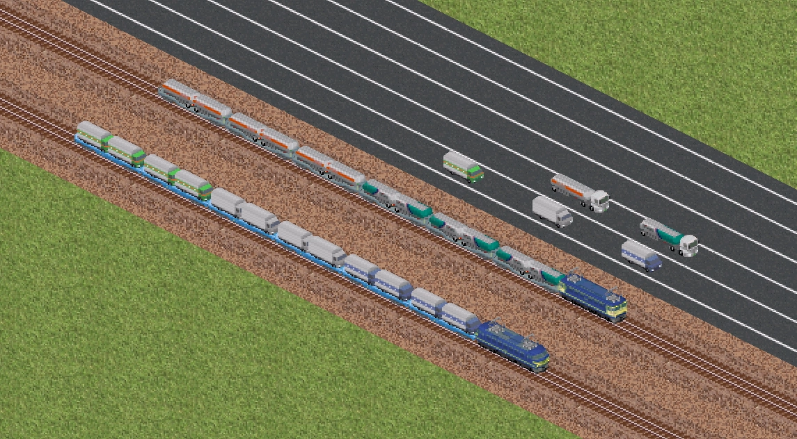 トラックを貨車に乗せるピギーバック輸送のアドオンです。 欧州のトレーラー4種と連接貨車が入っています。 セミトレーラーは独自の描画位置を採用しており、セミトレーラーをけん引するトラクターは入っていません。 拙作セミトレーラーセット (https://simutrans-portal.128-bit.net/articles/%E3%82%BB%E3%83%9F%E3%8…
