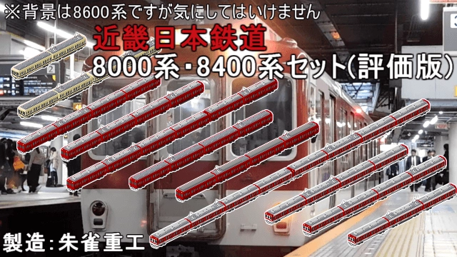 【注意】 評価版のため、正式版で仕様変更が実施される可能性があります。 予めご了承ください。 近鉄8000系・8400系です。 1964年から使えます。 詳細はReadmeにて。