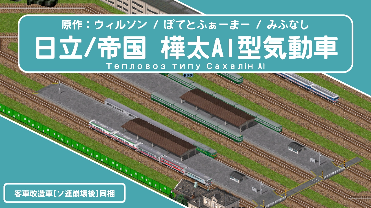樺太において、先日公開したD2の前任を担っていたA1型です。中間車はソ連崩壊後客車に転用されました。 おまけアドオンとして、D2の中間車も客車に転用できるようにしています。実際は改軌されたんで引退しちゃったんですけどね......