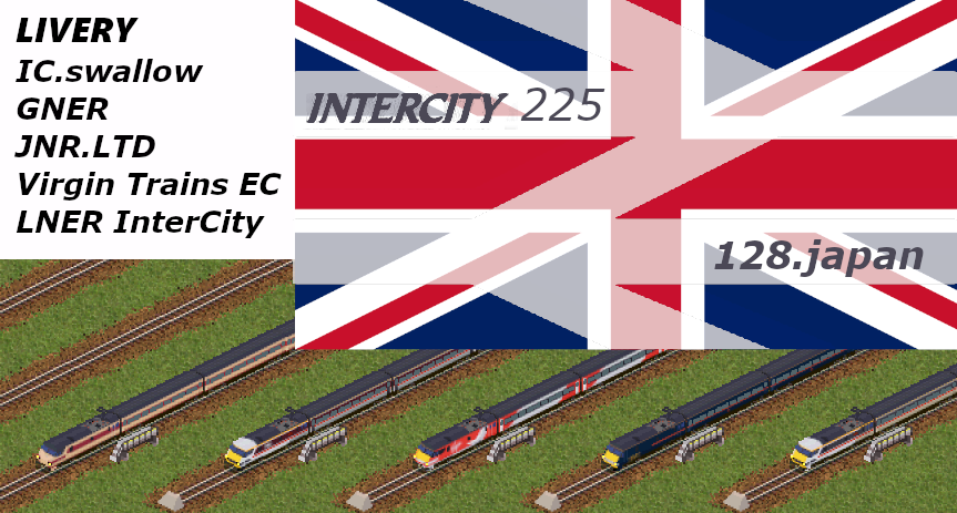 British Rail New Train!! 1990年にイギリス 東海岸本線で運転を開始した、インターシティ225を再現できるアドオンセットです。 牽引機であるClass91電気機関車とMark4客車が、2種類の塗装で収録されています。 二等旅客と一等旅客、選択に応じてさらに小荷物(cat6)と別アドオンで追加される自転車・郵袋が輸送可能です…