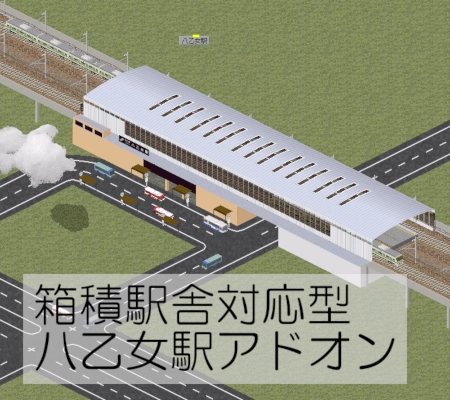 仙台市地下鉄南北線八乙女駅の駅舎のアドオンです。 箱積み駅舎に対応しており、八乙女駅のパーツを箱積み駅舎に組み合わせることで、新しい毛色の駅舎が作れます。 また、八乙女駅アドオンと一部の箱積み駅舎を組み合わせることで、八乙女駅を再現することも可能です。
