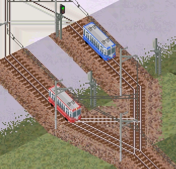 ケーブルカー風の斜面に合わせた気動車アドオンです。マップ回転に非対応ですが、レールの組み方次第で交換も作れます。