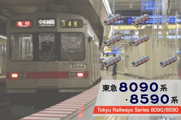 日本初の軽量ステンレス車両、東急8090系・8590系のセットです。 とても組成や仕様が面倒なので、編成例を同梱しています。そちらを参考にしながら編成を組んでいただけるとわかりやすいと思います。